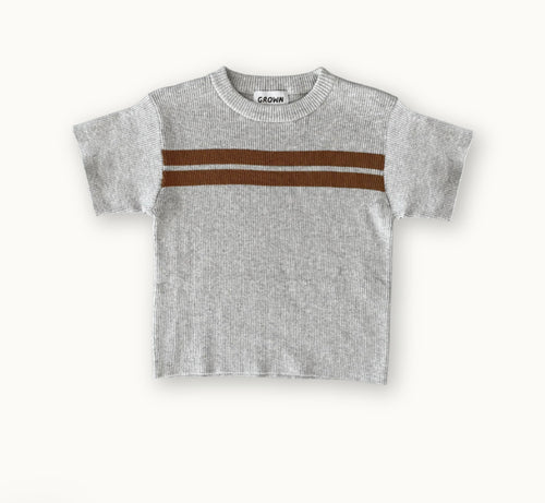 Grown Clothing - Twin Striped Ribbed Tee Grey Marle