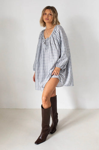 Tiny Trove - Women's Aimee Check Dress - Blue/White/Grey Check