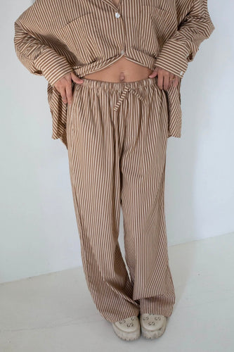 Tiny Trove - Women's Celia Cotton Stripe Pants - Caramel/White Stripe