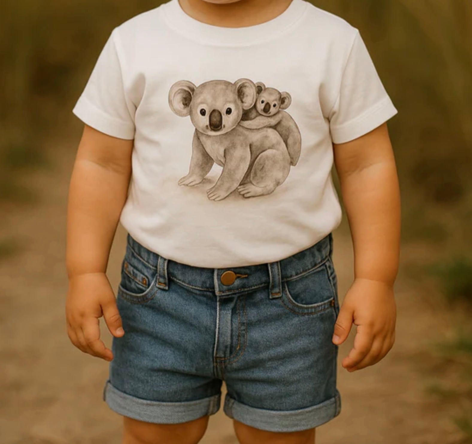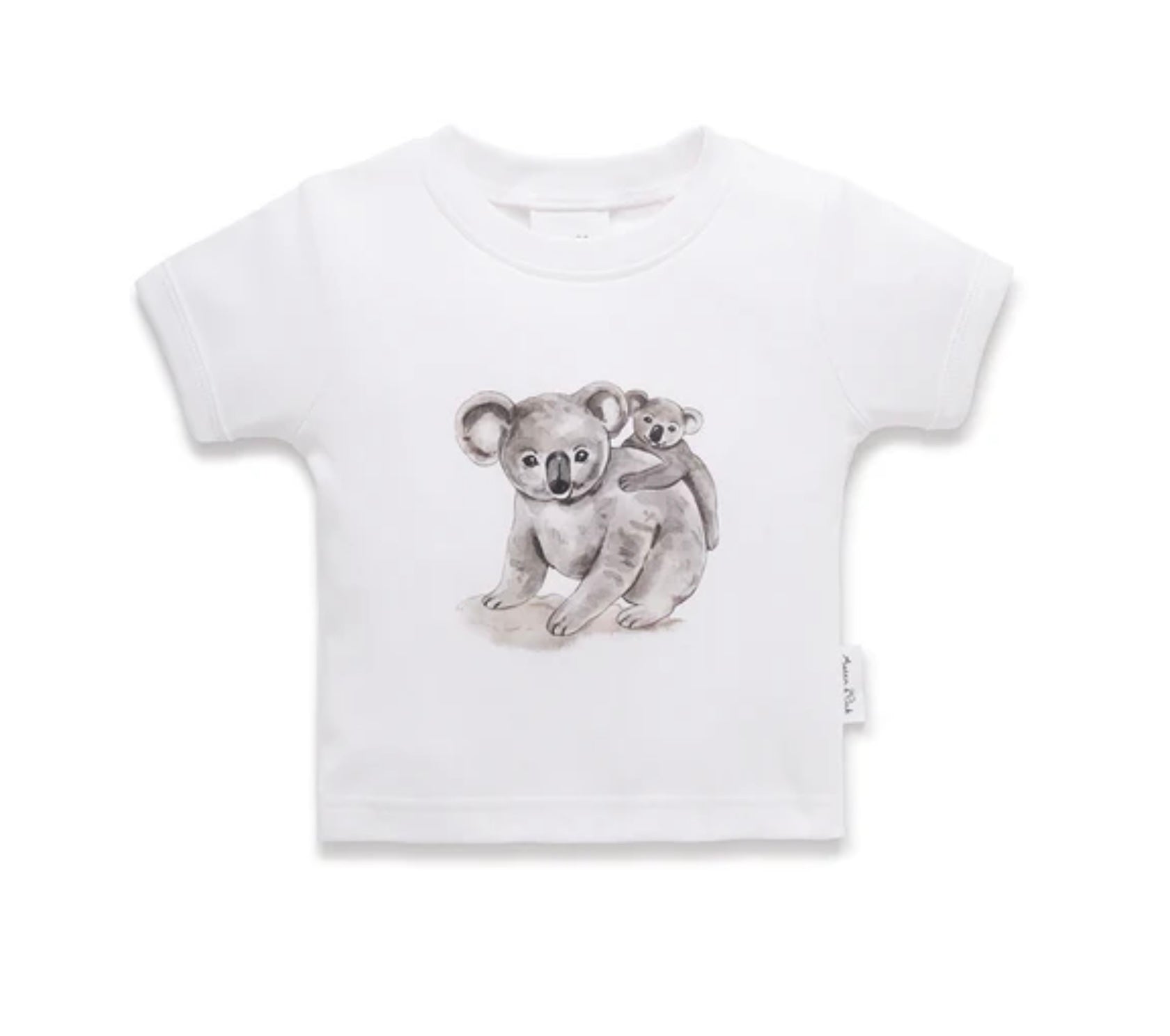 For the aussie animal lover, our classic print tee is a versatile wardrobe piece easily paired or layered with any outfit. Crafted from GOTS certified organic cotton, and using natural dyes the tee features a central illustration of a cute koala bear with her baby.