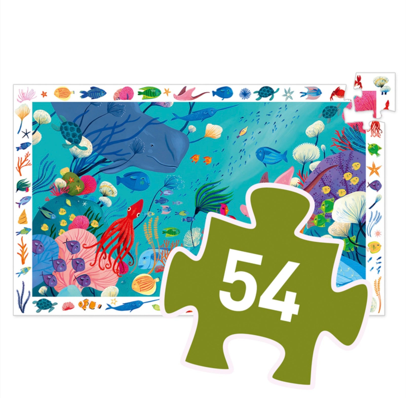 An underwater themed 54 piece puzzle with creatures of the deep. Features beautiful vibrant colours and fantastic illustrations of the amazing animals found under the sea.