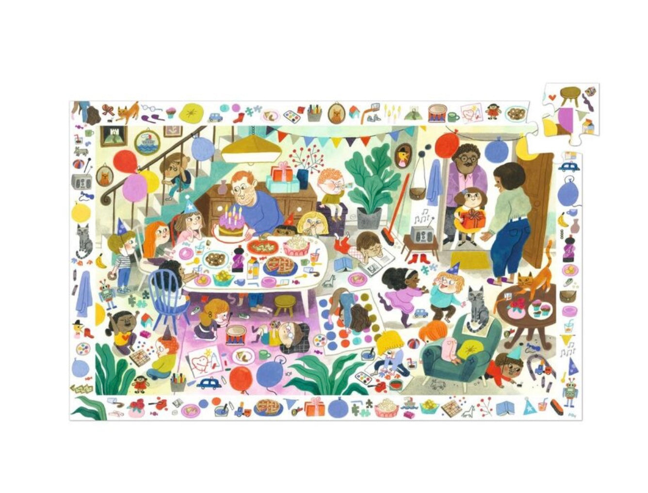 A 54-piece observation puzzle to discover Jenny's 5th birthday party. Complete the puzzle then have fun finding the elements depicted in the border inside the image.