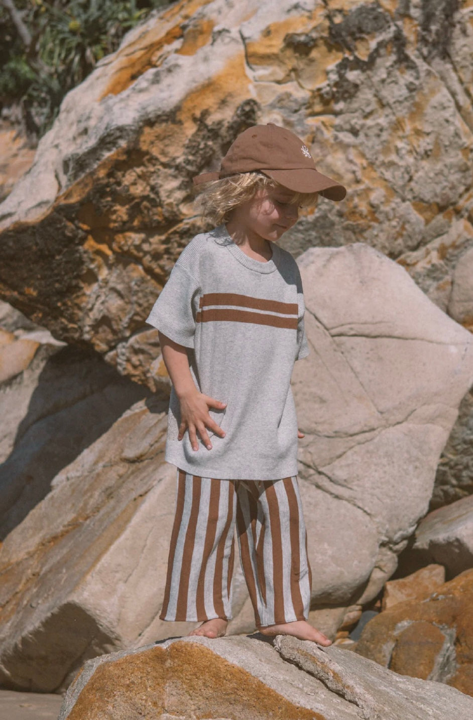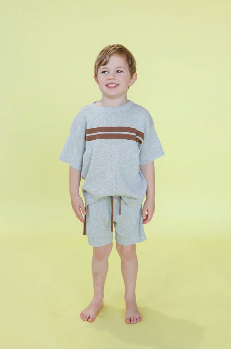 Grown Clothing - Twin Striped Ribbed Tee Grey Marle