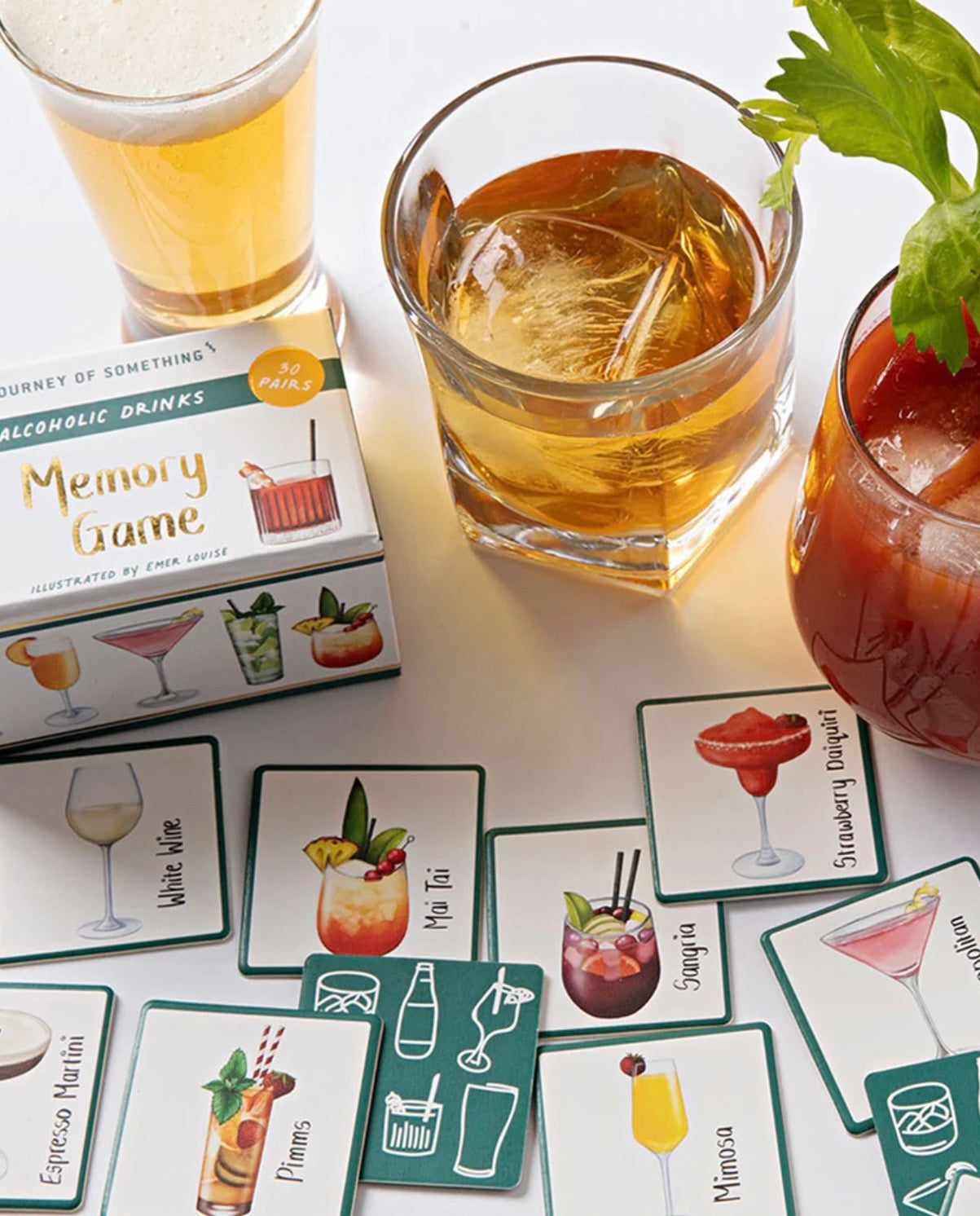 Discover endless entertainment with our Alcoholic Drinks Memory Card Game, a captivating adult game that doubles as the perfect gift idea. Dive into the world of spirits and beverages while challenging your memory and having a blast with friends and family.