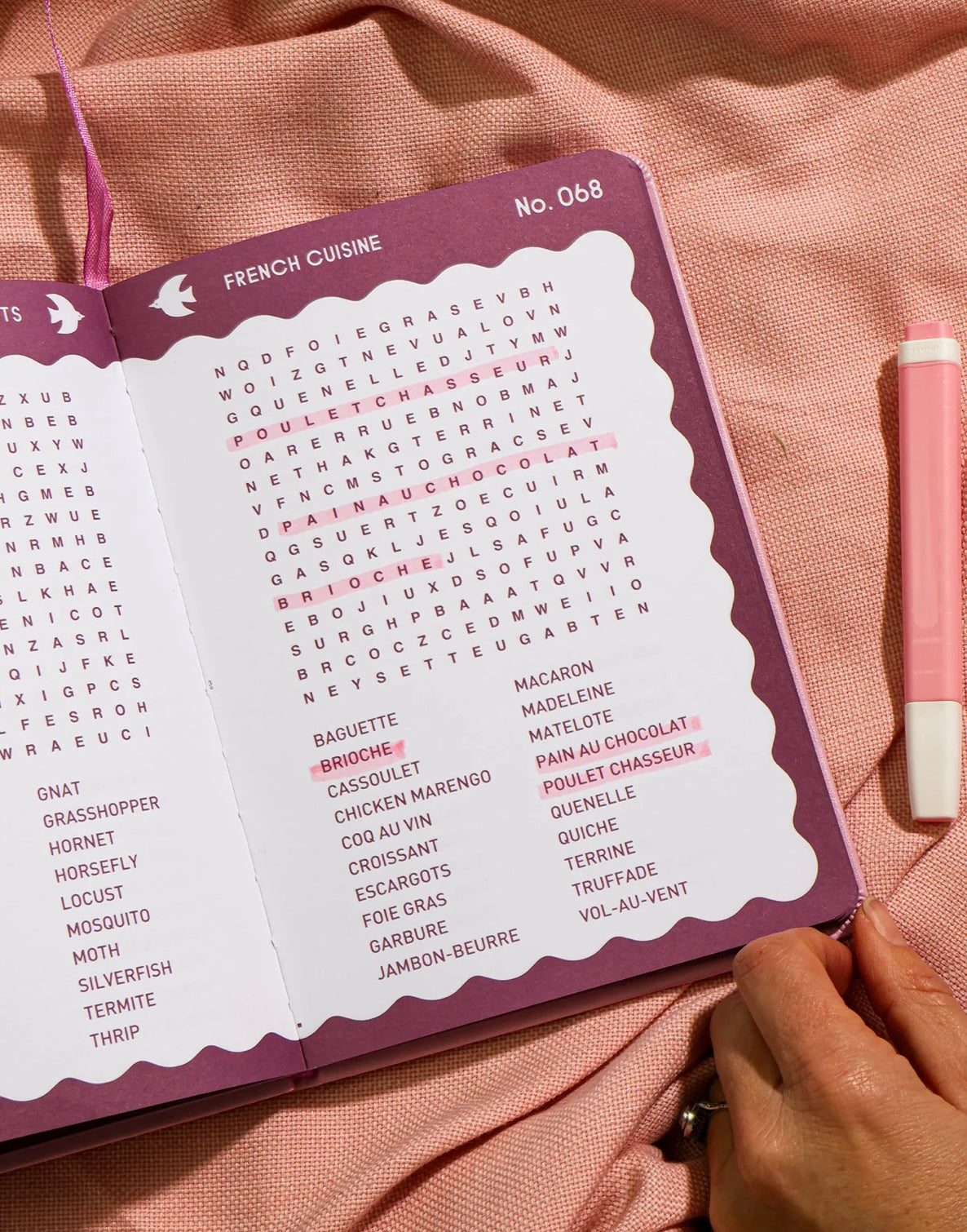 This gorgeous word search book pairs a stunning, embossed cover with pages of fun, themed puzzles - everything from flowers, and musicals to food and geography.