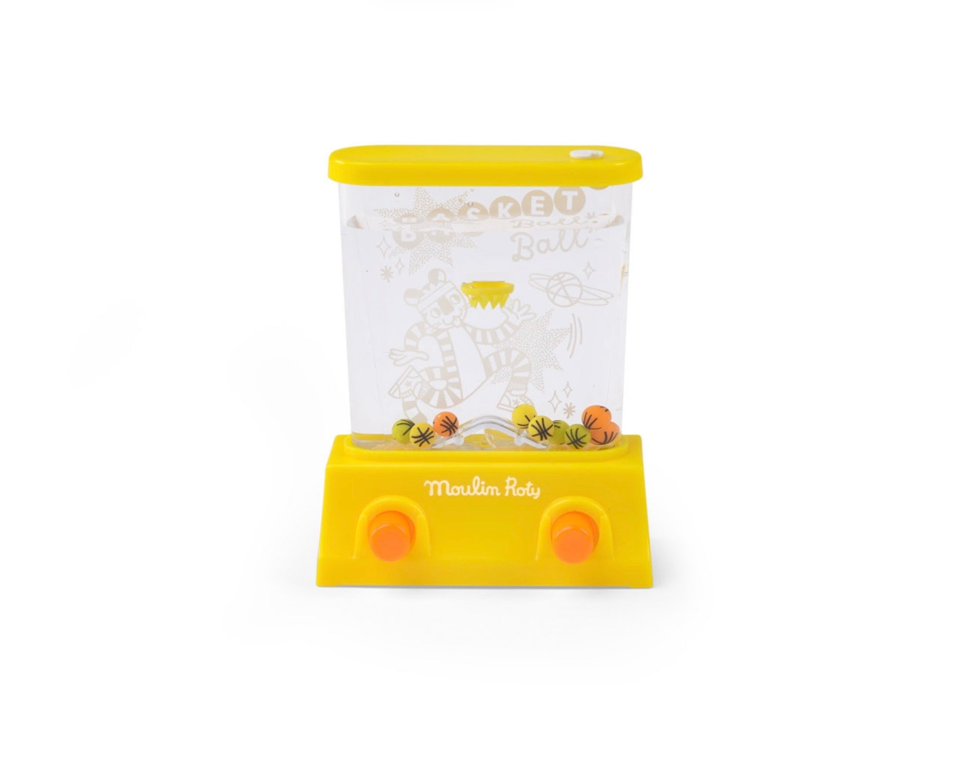 Rediscover this classic retro water game in its mini version for fun everywhere! Fill it with water and press the two buttons to move the basketballs and score baskets.