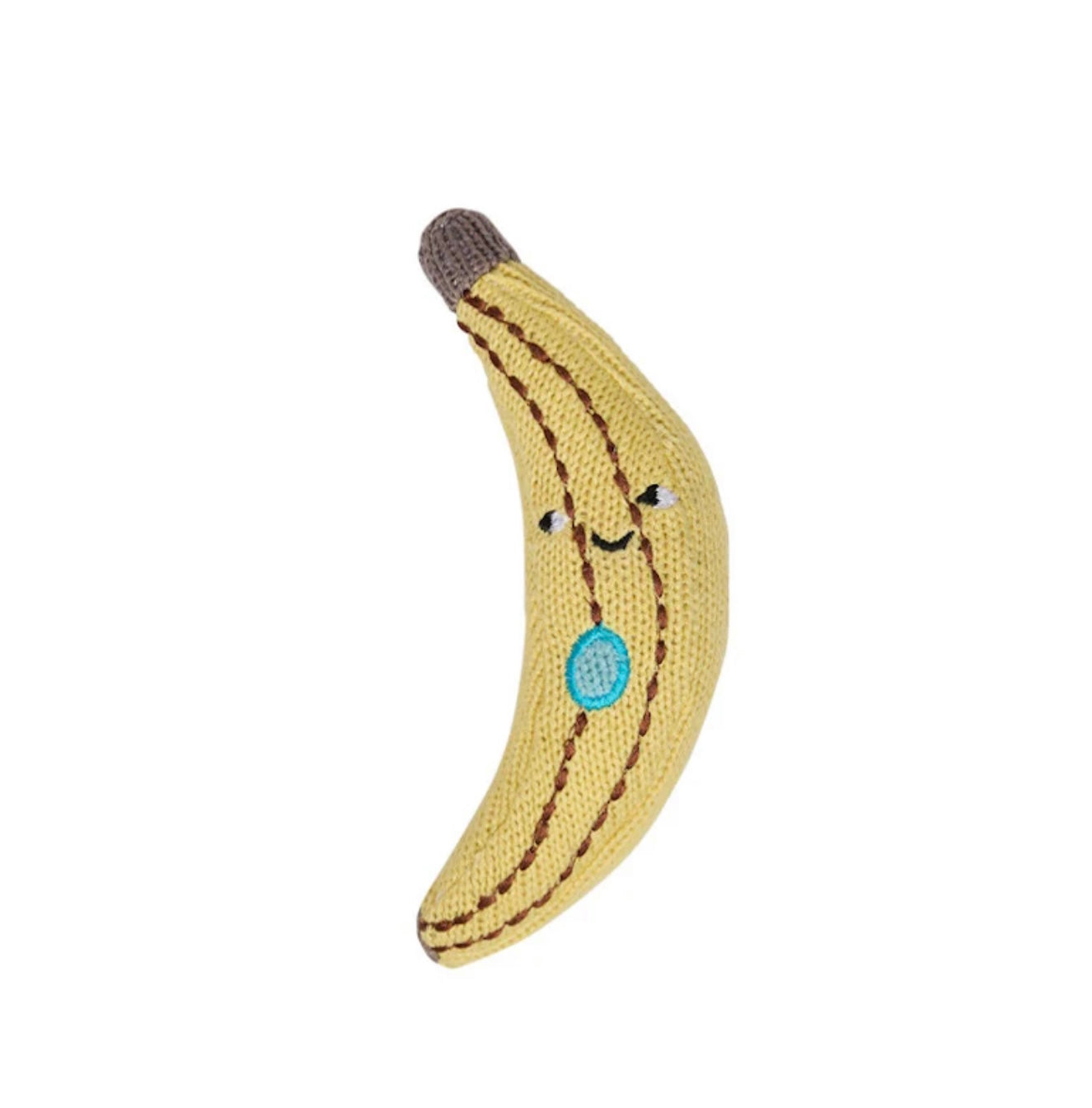 Brighten up playtime with the OYOY Banana Rattle – a quirky and colourful companion that’s perfect for tiny hands and curious minds. Handcrafted from soft cotton knit with a sweet embroidered face, this playful banana includes a gentle rattle sound that encourages sensory development and motor skills in babies.