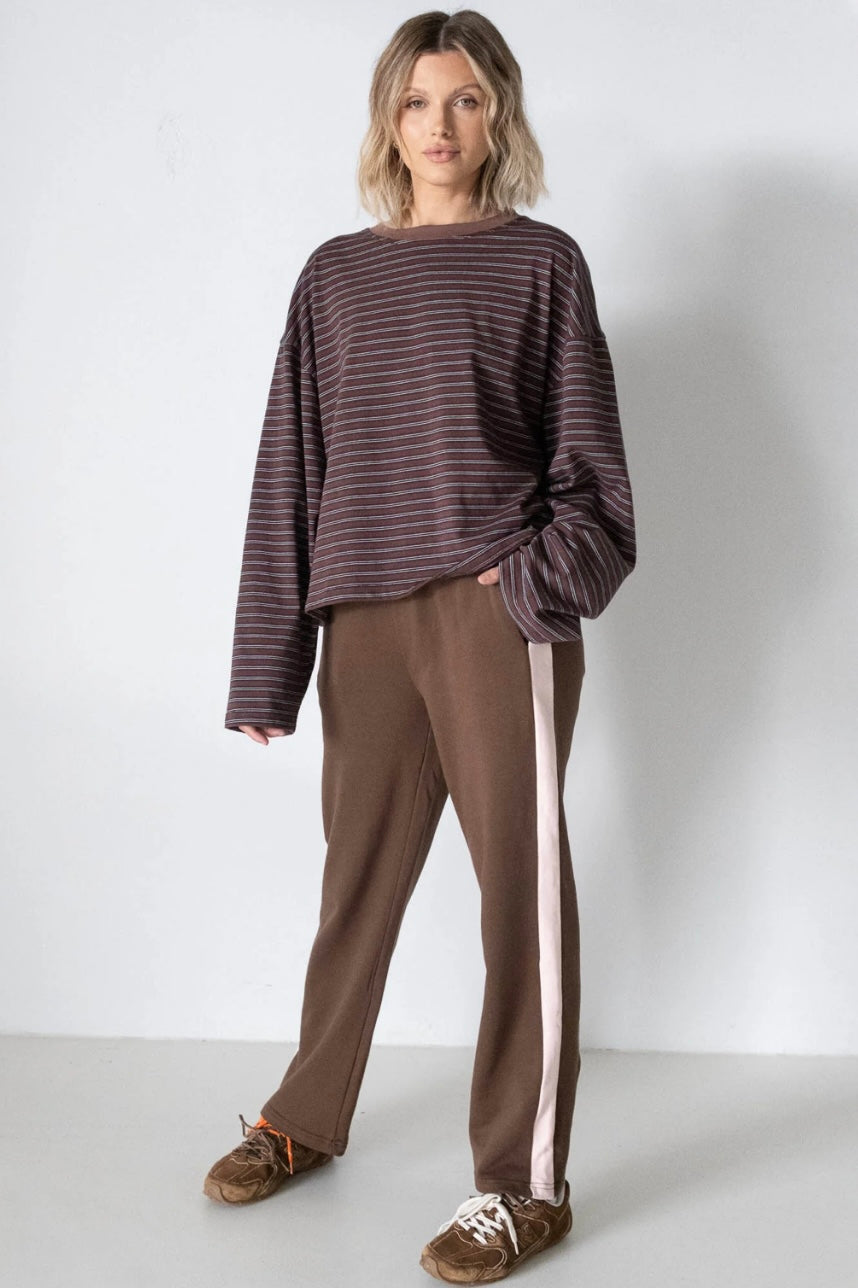 Made from 100% cotton french terry, these pants are soft, breathable, and made for all-day wear. The enclosed elastic waistband keeps things comfy and secure, while the contrast stripe panel down the leg gives them that sporty-chic edge. With practical pockets, a relaxed fit, and a wide-leg cut, they’re as functional as they are flattering.