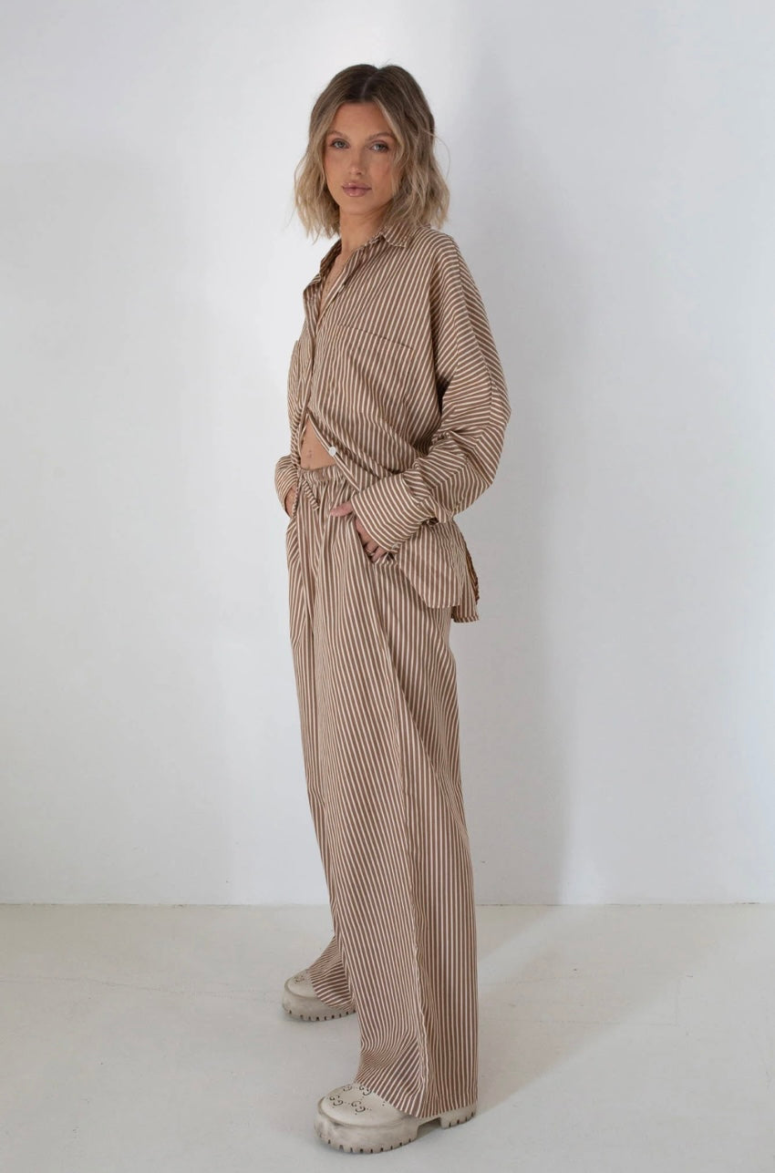 Enter the Women’s Celia Stripe Cotton Pants! These pants are crafted from 100% cotton, making them breathable, soft, and perfect for all-day wear. An enclosed elastic waistband with a matching self-fabric drawcord gives a secure yet comfortable fit, while the addition of pockets keeps them practical for everyday life. Featuring our exclusive Tiny Trove monogram embroidered logo on the back pocket.
