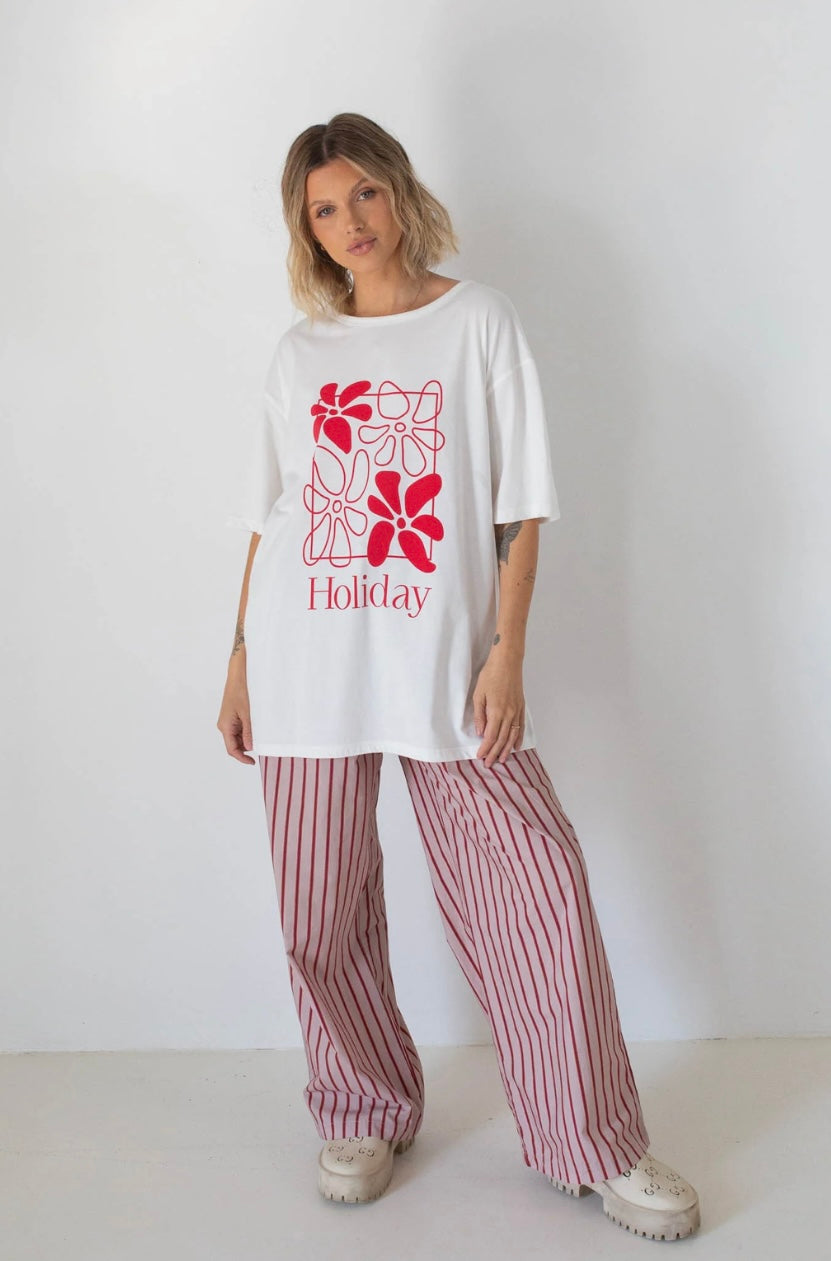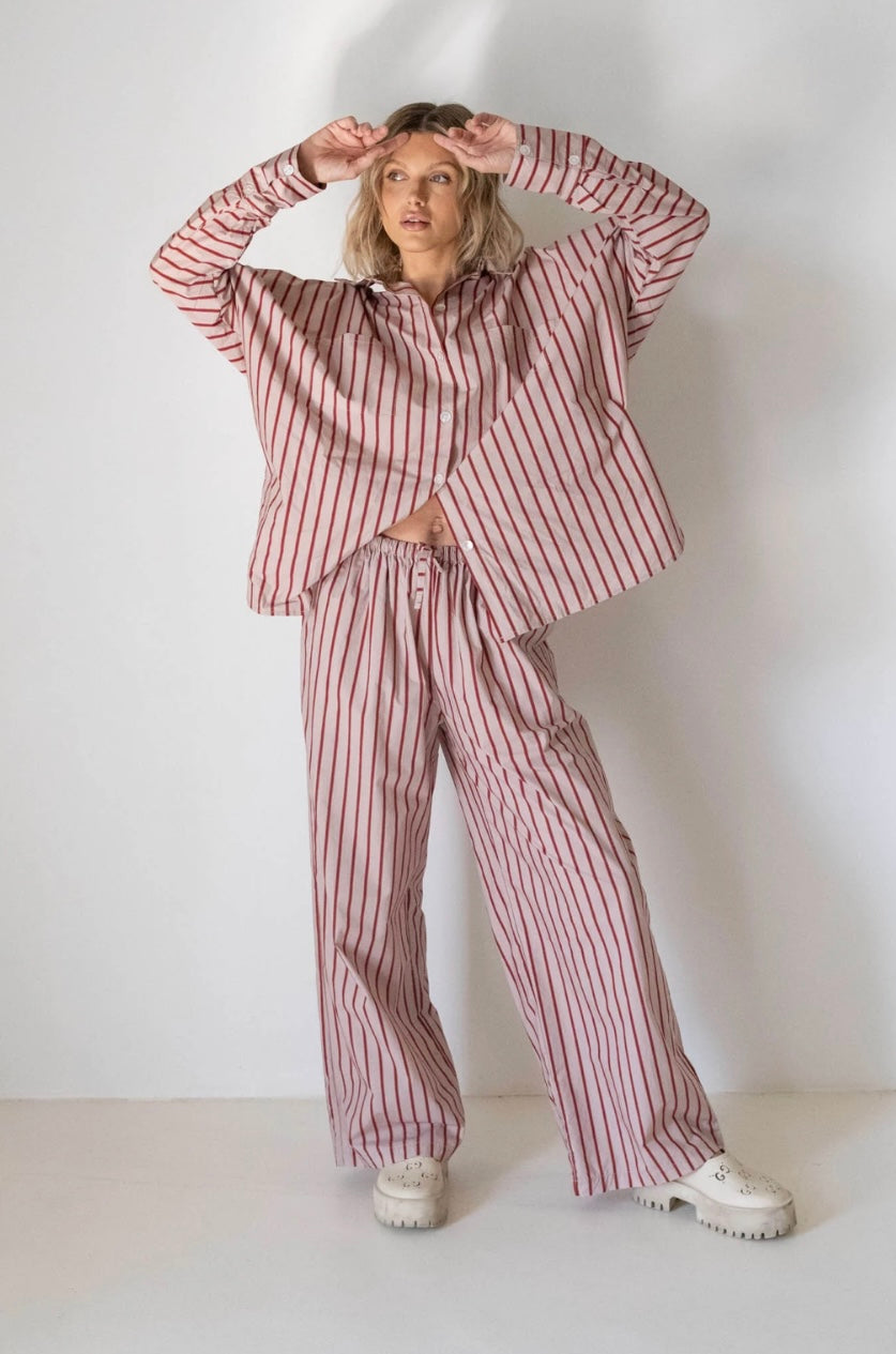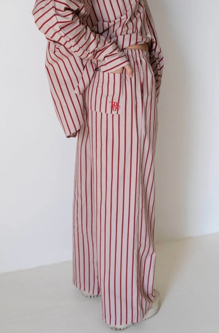 Tiny Trove - Women's Celia Cotton Stripe Pants - Pale Blush/Deep Red Stripe