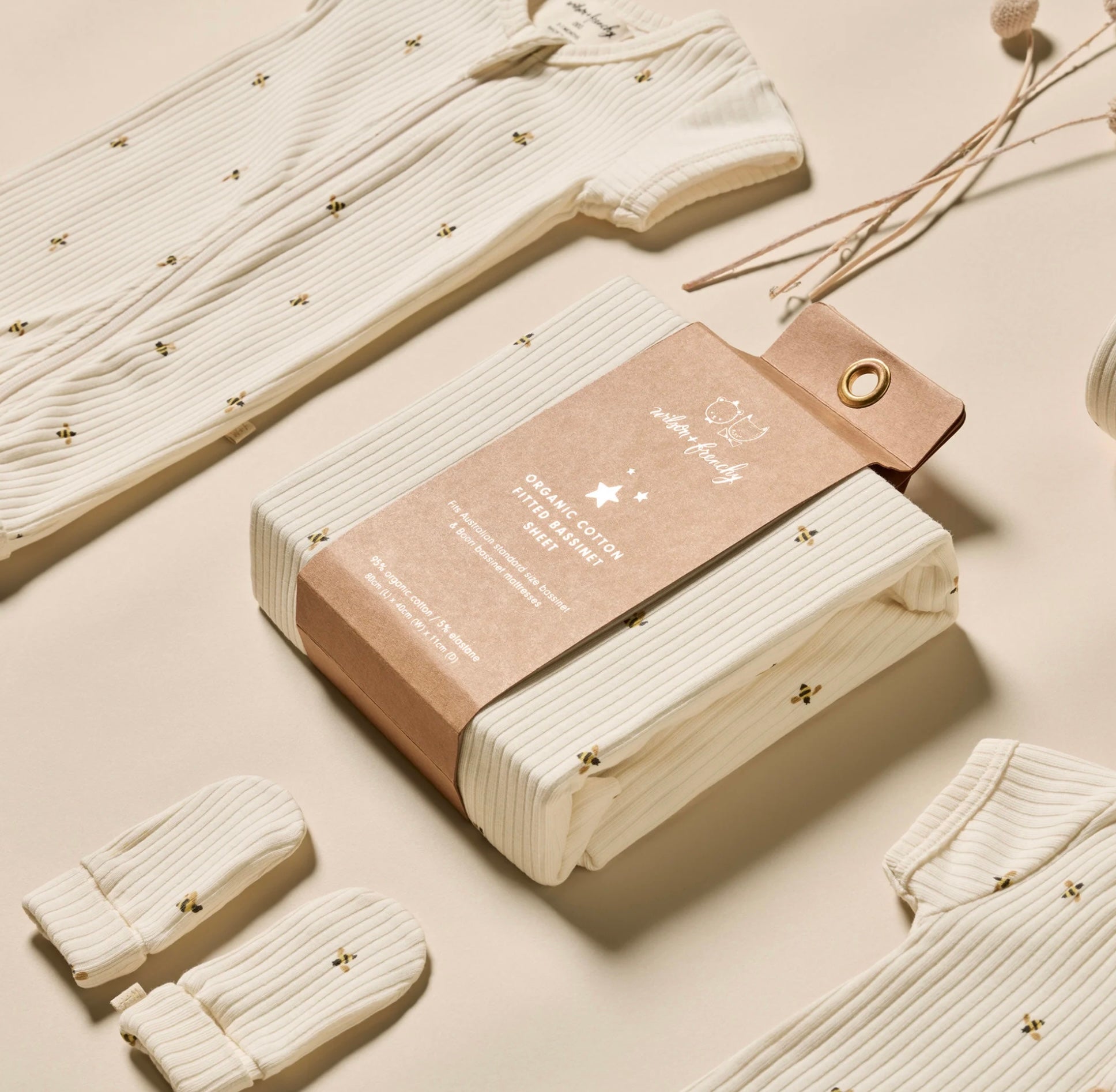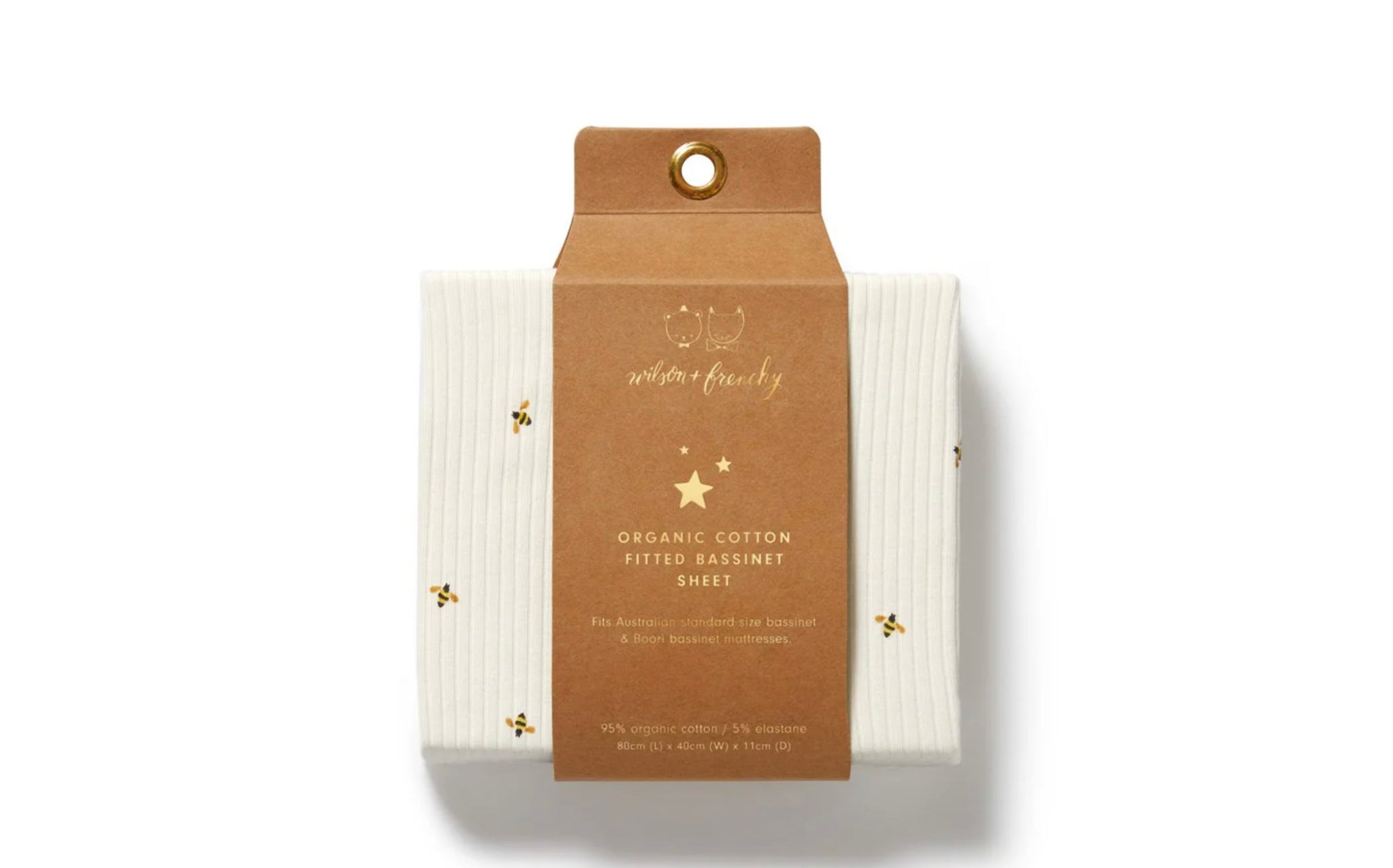 This organic bassinet fitted sheet is made to fit Australian standard size bassinets and Boori bassinets. This super-soft, breathable and eco-friendly bassinet sheet features a gorgeous hand-illustrated all over print. Pair back with a matching bunny rug or organic zipsuit for the perfect gift. Key Features: Gentle on baby's delicate skin. Great baby shower gift. Made from GOTS-certified organic cotton. Australian owned and designed. Packaged in a bio-degradable. Details: Fitted sheet dimensions: 80cm long x 40cm wide x 11cm deep. 95% GOTS-certified organic cotton, 5% elastane. Certified by: Ecocert, EGL 212333. Machine washable. Made in India.