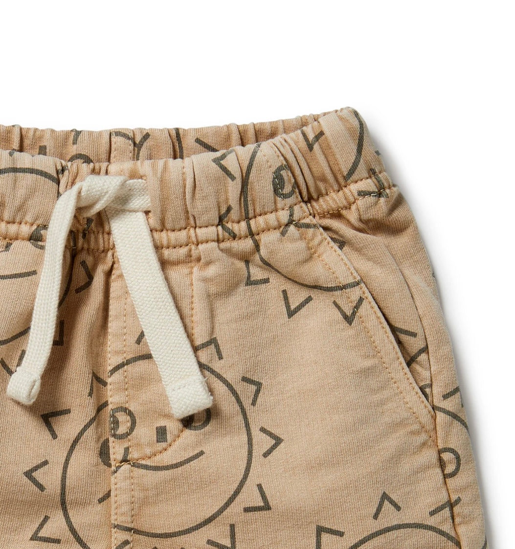 Made from 100% GOTS-certified organic cotton French terry, these comfy shorts are perfect for everyday wear. Overdyed for a beautifully rich colour and extra softness, they feature our cheerful Happy Days print that’s sure to bring a smile. With a soft elasticated waistband and functional drawcord, these shorts offer a comfy, adjustable fit for active little ones. Kind to delicate skin and free from harmful chemicals, they’re made for play and sunshine. Key Features: Soft elasticated waistband for easy, pull-on comfort. ightweight and breathable for warm weather. Gentle on sensitive skin. Adjustable ties at waistband. Made with GOTS-certified organic cotton. Sustainably produced. Packaged in a bio-degradable bag. Details: 100% GOTS-certified organic cotton. Certified by: Ecocert, EGL 212333. Machine washable. Made in India.