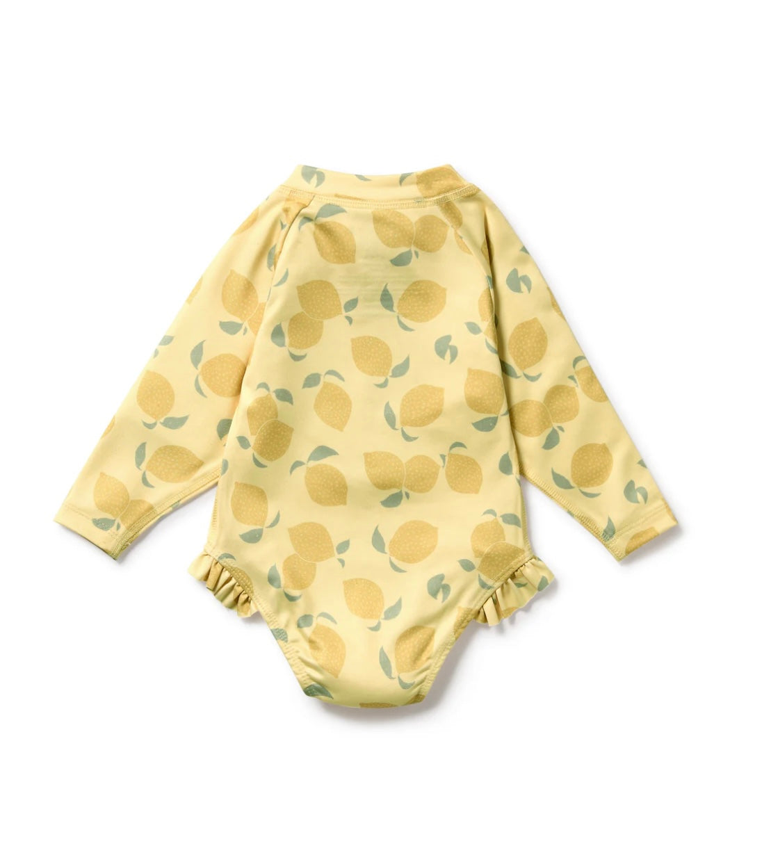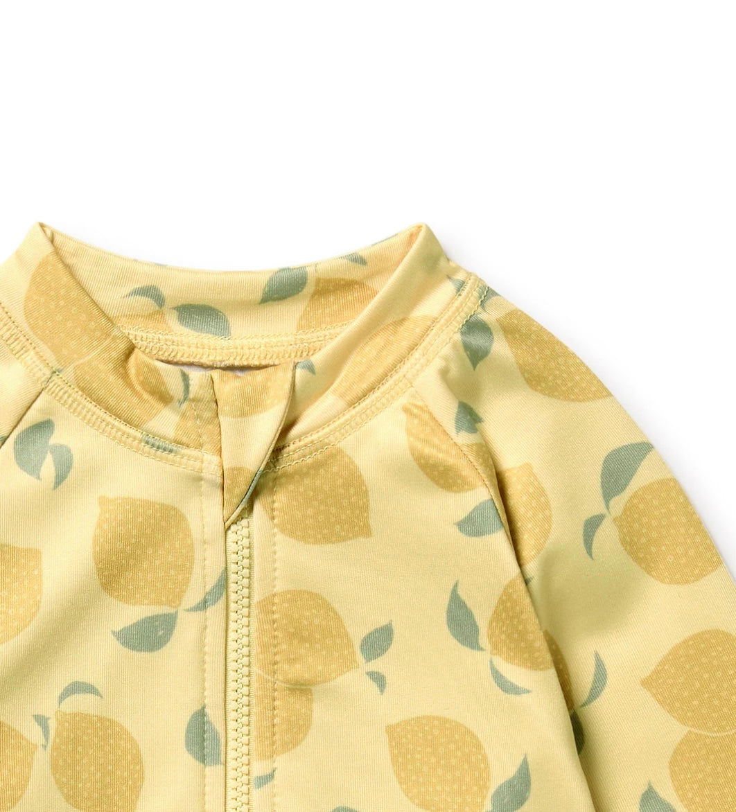 One piece swimsuit for babies and kids, made from recycled polyester, our swimwear is rated UPF 50+, suitable for the pool and beach. Elasticated leg opening with ruffle and front zip opening for easy dressing. Key Features: Made from recycled polyester. Snap crotch available for sizes 00-2. Soft elasticated leg opening with ruffle. Packaged in a bio-degradable bag. Details: Outer and Lining: 90% recycled polyester, 10% elastane. Machine washable. Made in India.