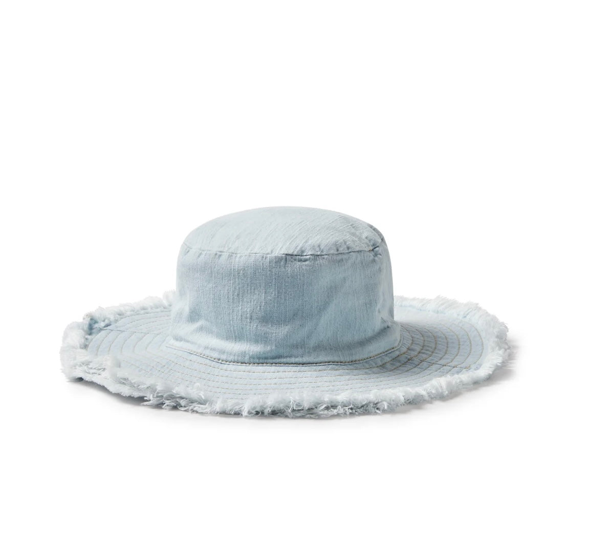 Keep your little one stylish and sun safe with this cute Denim Sun Hat. Perfect for summer, this organic cotton bucket hat is sure to brighten up any little one's day. It looks great, and is a must-have for your child's wardrobe. Key Features: Wide brim. Bucket shape. Soft washed. Frayed edges. Made with organic cotton. Australian owned and designed. Packaged in a bio-degradable bag. Details: 98% organic cotton, 2% elastane. Machine washable. Made in India.